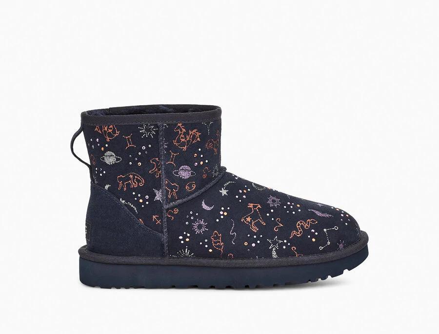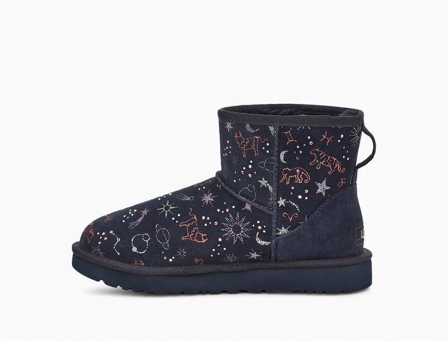 Model:1112516This horoscope-inspired take on our iconic Classic features shimmering zodiac signs in a metallic print with dazzling crystal accents. The festive suede upper is grounded on a lightweight, cushioned sole for all-day support, and finished with our ultra-soft plush wool blend for cloud-like coziness. Pair with dark denim and velvet, or leggings and cashmere.