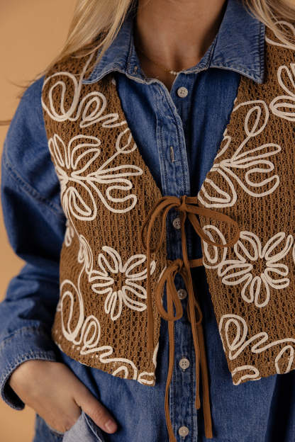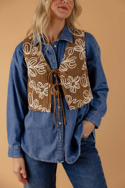 Crafted with a delightful chunky embroidered design, this vest exudes personality and flair. Pair it with a tank and some shorts, or wear it over a neutral dress for the most unique fit. Ready for some compliments??