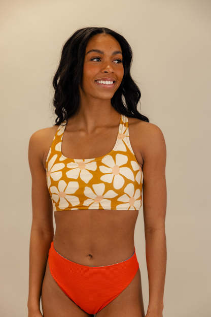 Give me a moment while I die over how cute this swim top is. Coming in hot with a scoop neck, twisted strap back, and the cutest summer floral print, what more could you want in a swim top? Pair with bottoms of choice; are our personal faves!
