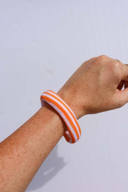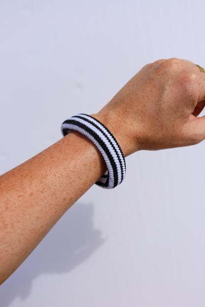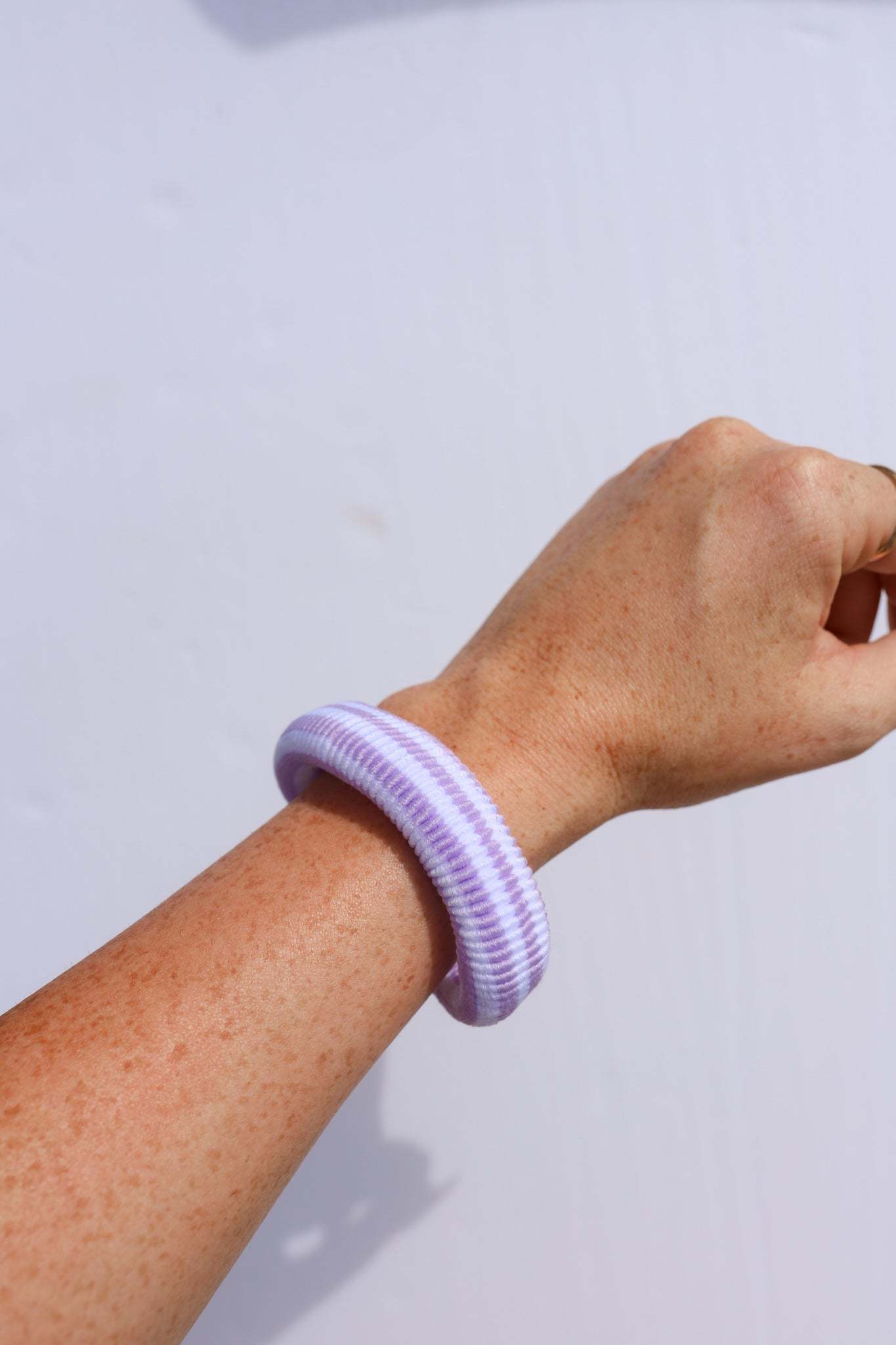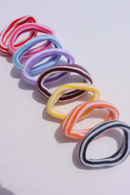 These slick back ponytails come in the cutest striped pattern in packs of 3 of the same color. They are perfect if you need a tight elastic for your high intensity workout, but still offer a stylish look and this elastic is just fabric with no elastic on the inside to damage your hair. Perfect for pool days, high intensity workouts, or everyday use! Bonus is that they are made of a ribbed nylon material that is gentle, yet tight on your hair. This helps protect your hair from breakage that normal ponytails cause!